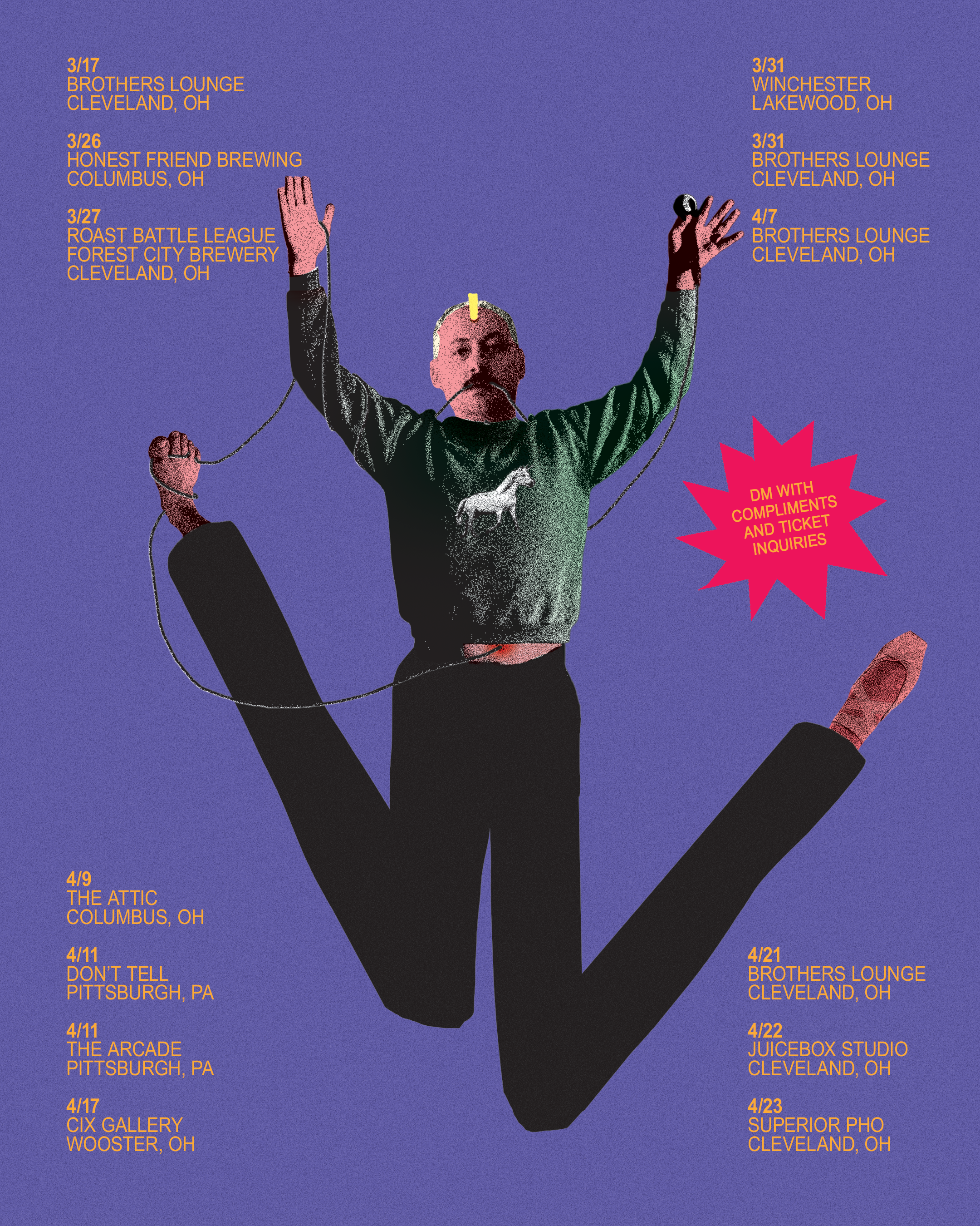 COMING 2026 - BUFFOON is “comedy” special running around [for] 30 minutes. It is a piece recorded in the last year of my 20s. It’s not polished, it’s something else I think, existing in its own context and world. A chapbook. A haircut. Something. I wasn’t even sure I would be releasing a “special”, but is that: special. Rolling around on the floor. Royal guards, palm reading, lint rollers, firefighting, Rob Thomas. Performance for performance sake, an attention seeking talent show. Produced by Accidental Comedy, it was was taped in a single show inside of Dunlap’s Corner Bar, in the day time in front of a live audience of beautiful people.